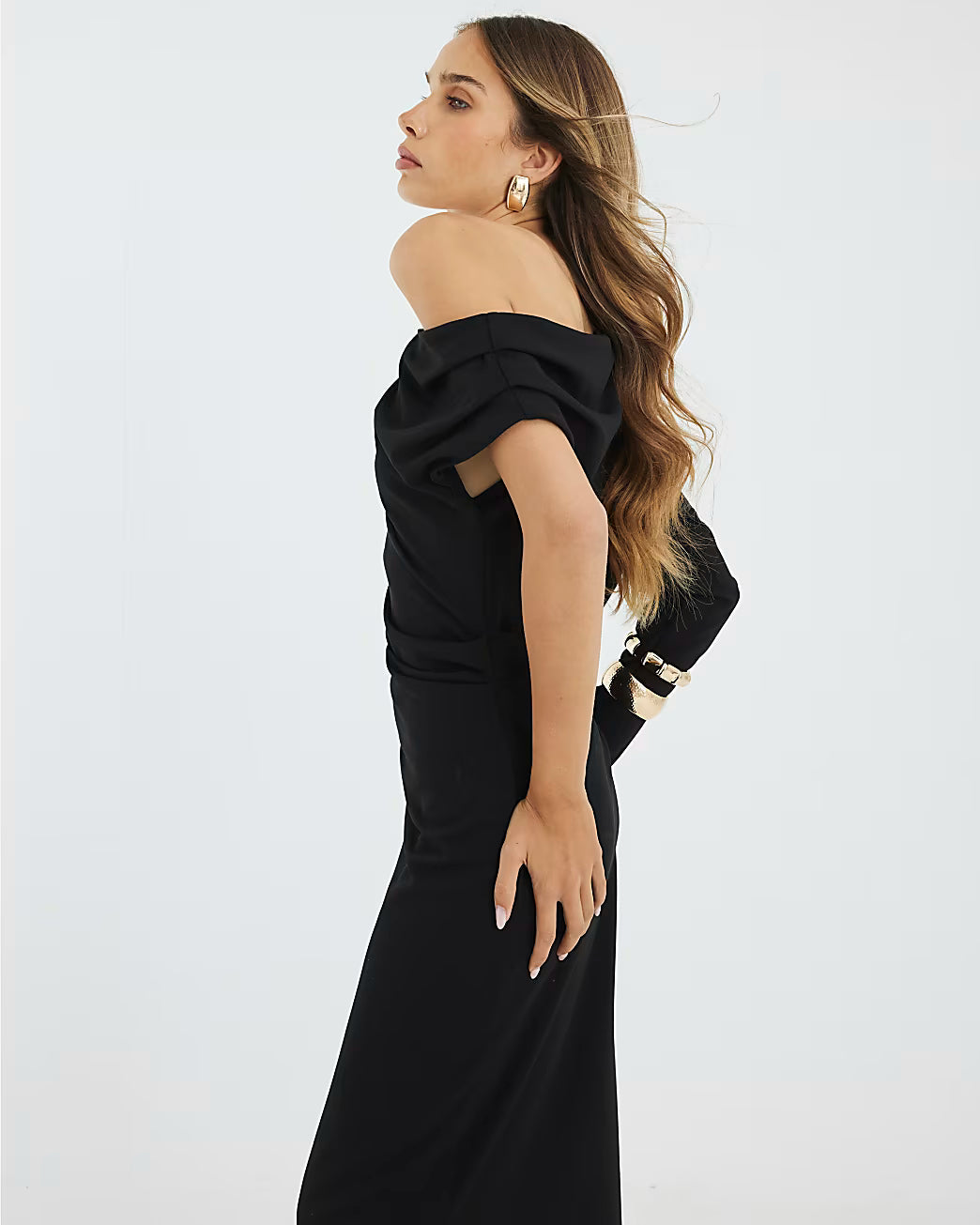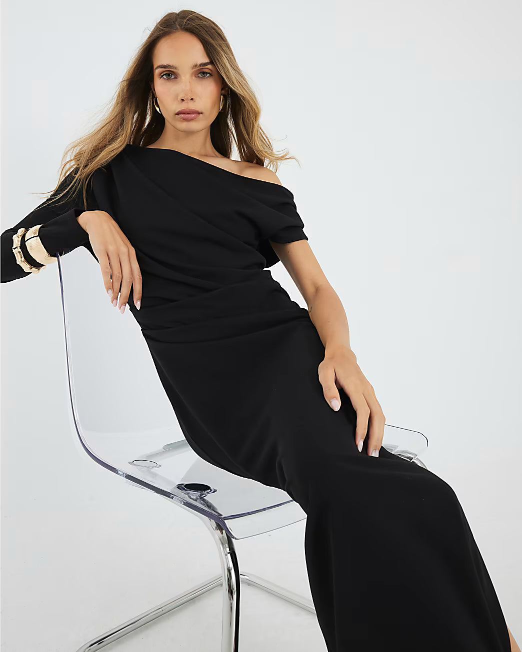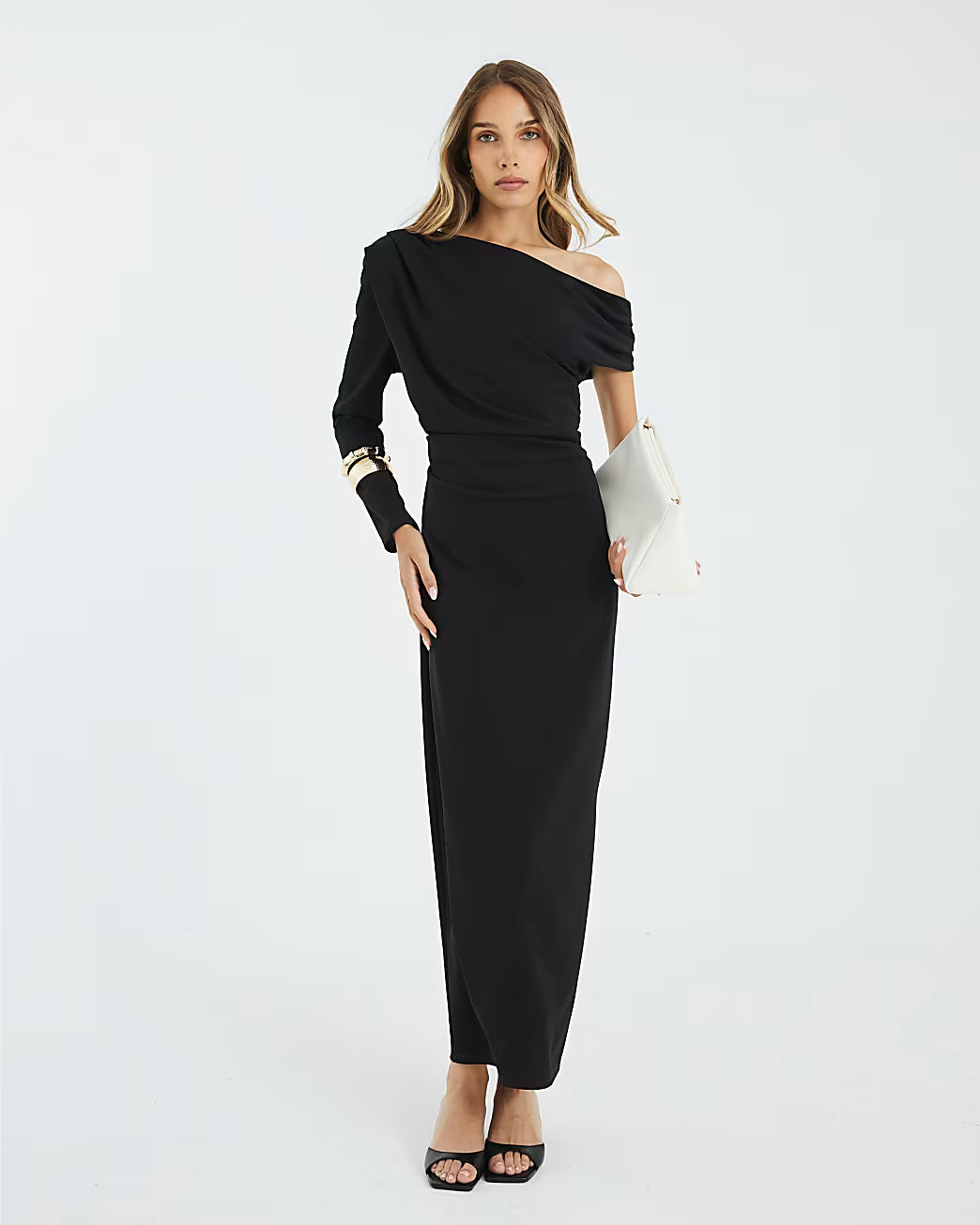Black Asymmetrical Draped Maxi Dress