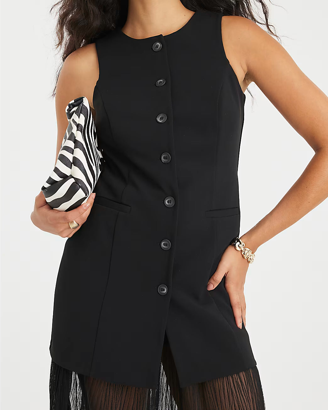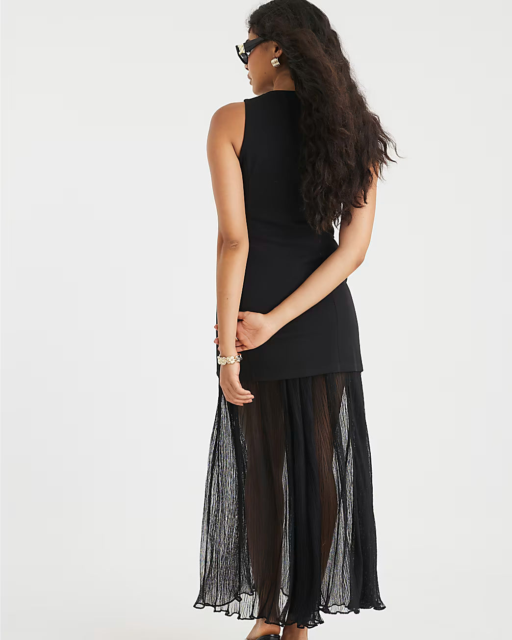 Black Plisse Sleeveless Waistcoat Maxi Dress