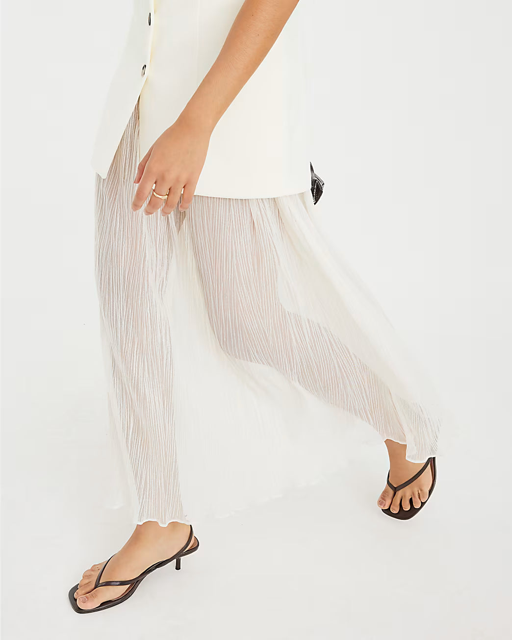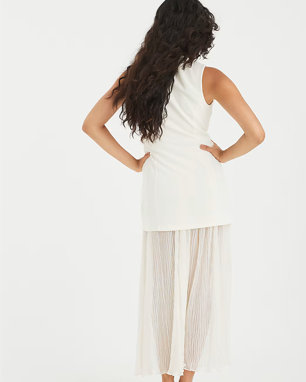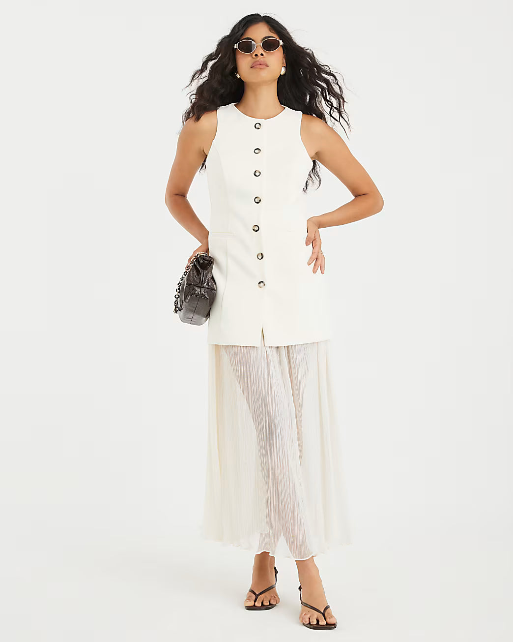 Cream Plisse Sleeveless Waistcoat Maxi Dress