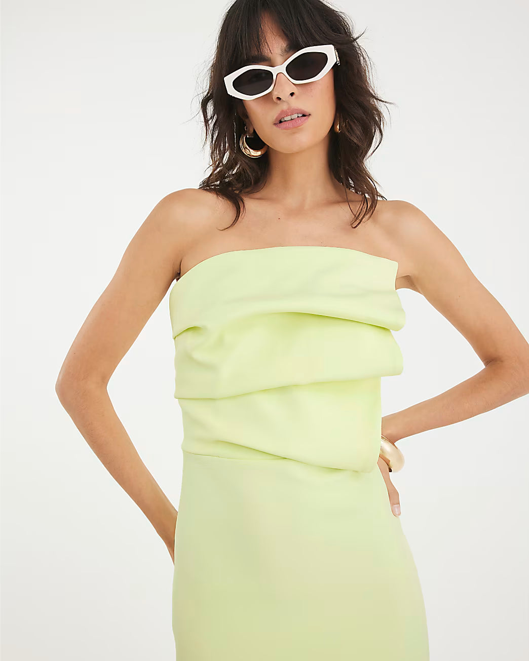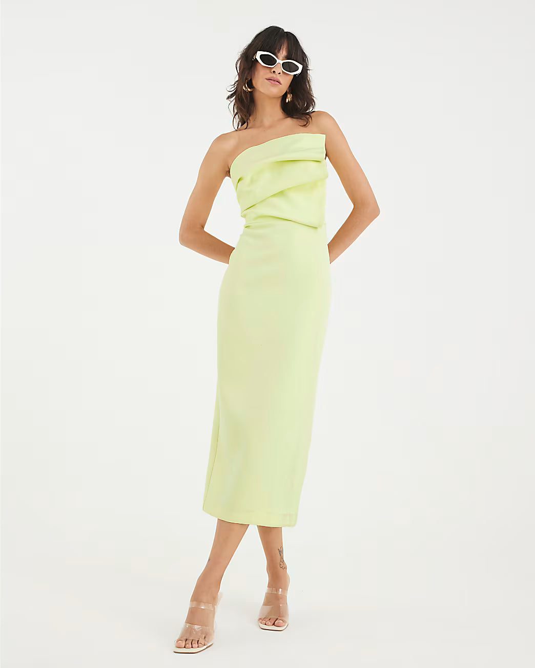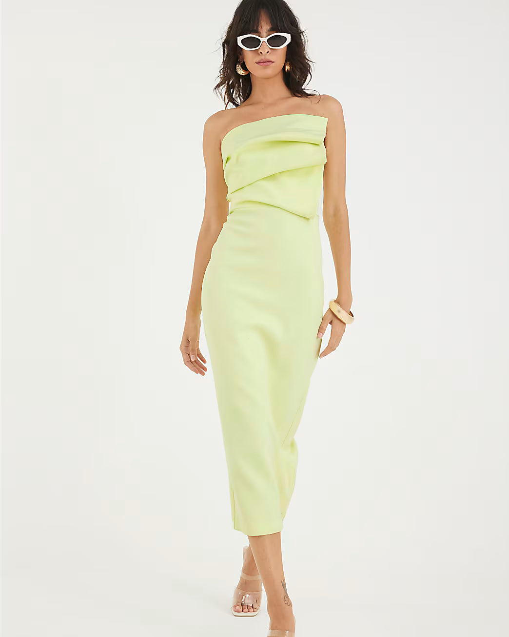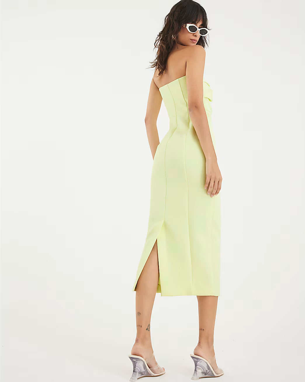 Green Sculpted Bandeau Tailored Midi Dress