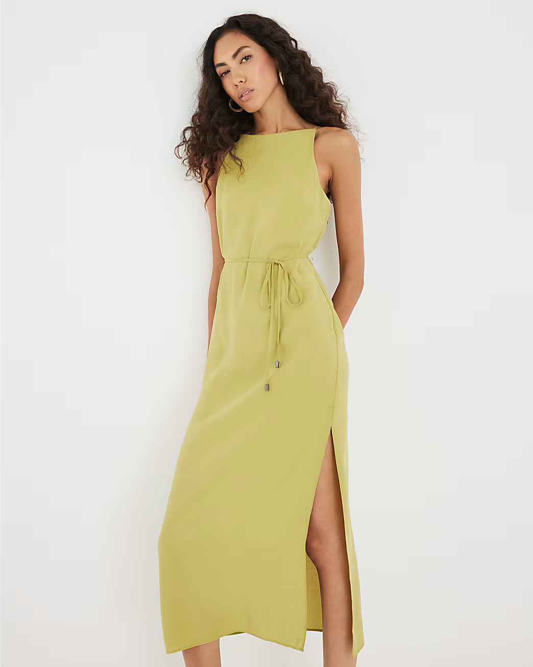 Green Tie Front Midi Slip Dress