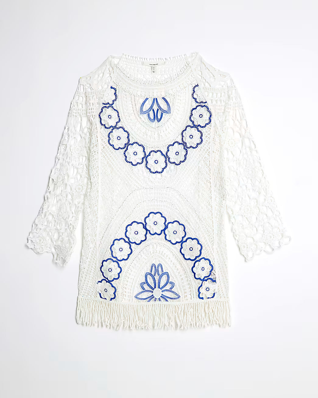 White Crochet Long Sleeve Mini Beach Dress