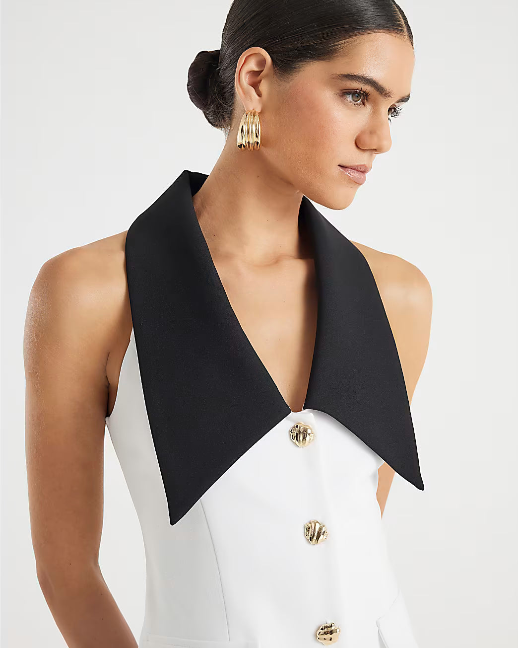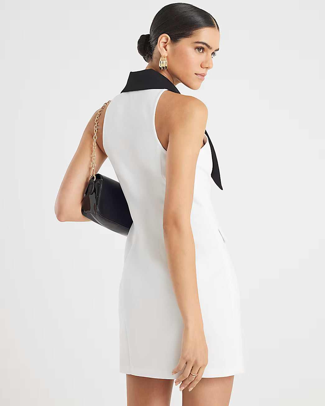 White Sleeveless Monochrome Mini Dress